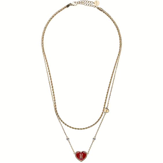 Collana da donna di Alviero Martini della collezione Portobello Rd . Girocollo doppia catena in acciaio IPG con cristalli e smalto. Lunghezza: 40+6cm