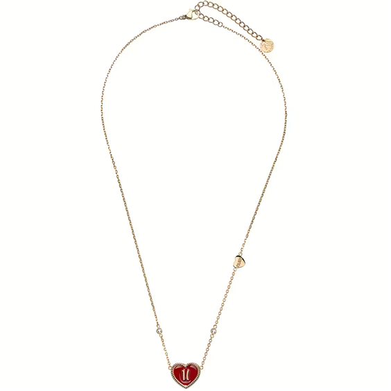 Collana da donna di Alviero Martini della collezione Portobello Rd . Girocollo in acciaio inossidabile con cristalli preciosa e smalto rosso. Lunghezza 40+6cm.
