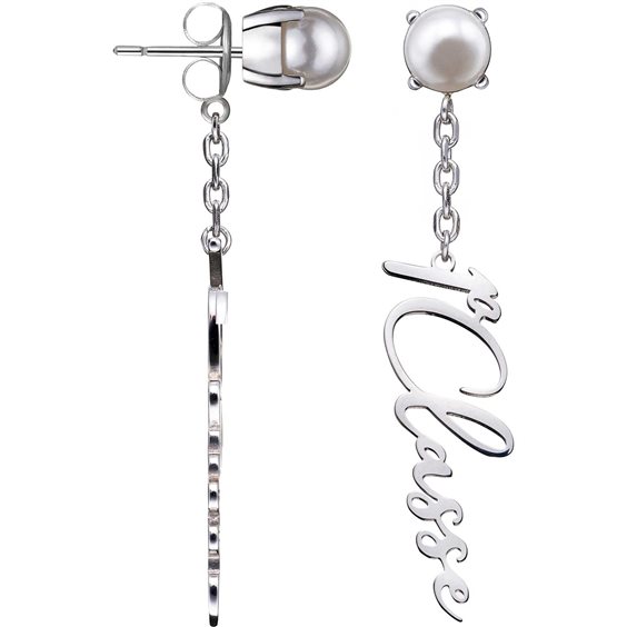 ORECCHINI PENDENTI LOGO ACCIAIO CON PERLA