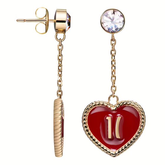 Orecchini da donna di Alviero Martini della collezione Portobello Rd . Orecchini pemdenti in acciaio IPG con smalto e cristalli.
