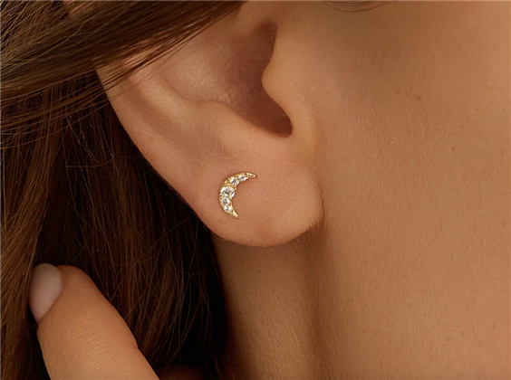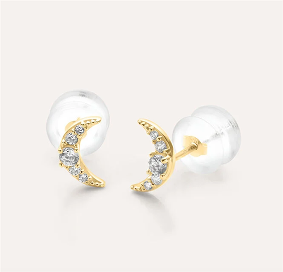 ORECCHINI TAPPABUCHI LUNA ORO GIALLO CON ZIRCONI